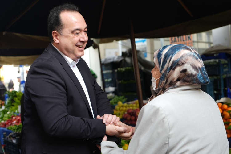 Pazarda tezgâhları tek tek gezerek esnafa hayırlı işler dileyen Başkan Dutlulu, hem alışveriş yapan vatandaşları hem de tezgâh başındaki esnafları dinledi.